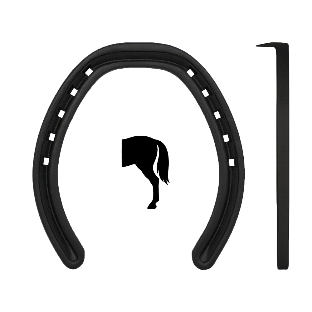 En relativt let jernsko til baghov med Kerckhaerts høje stålkvalitet. Skoen er falsad for godt greb og har udvendig tåkappe. Beregnet til skoning uden brod.
