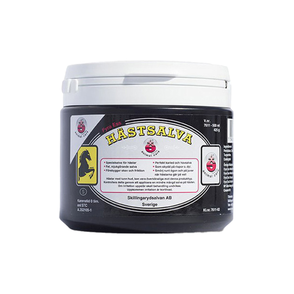 | 4S Hästsalva | 500 ml | Förebyggande och vårdande för hud och hovar |