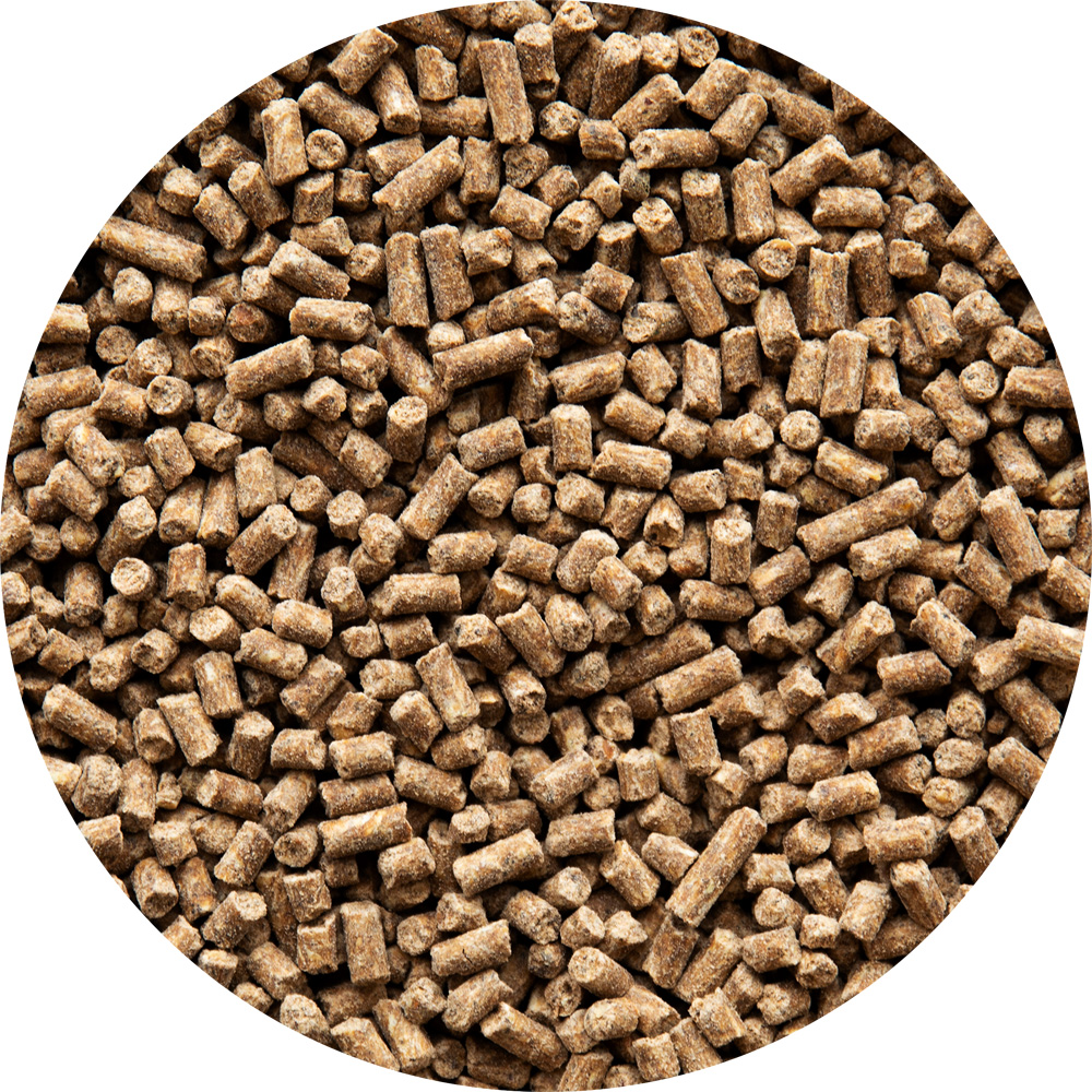 - Ges i kombination med grovfoder av god kvalitet (minst 1,5–2 kg per 100 kg kroppsvikt)