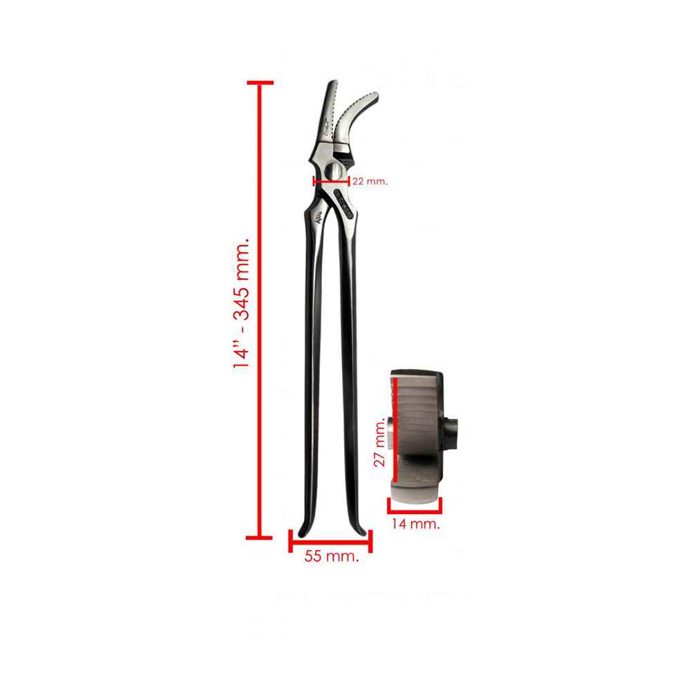 En 14" nittång från ICAR, designad för både höga och låga sömtag. Utrustad med något smalare och kortare käftar, vilket gör den idealisk för vanliga varmblod men även mindre hovar.