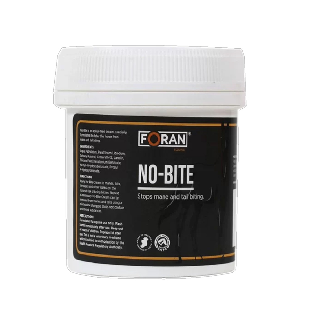 No Bite Cream är en effektiv krämavskräckare utvecklad för att motverka man- och svansbitning hos häst. Den starka men diskreta formuleringen hjälper till att skydda man och svans samt andra utsatta områden från att bli bitna.