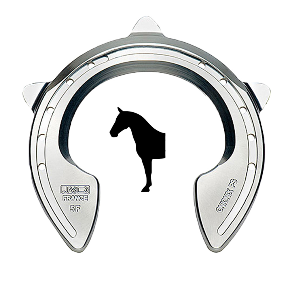 Sko i högkvalitativ aluminium för tävlingshästar med en förstorad yta under trakten.