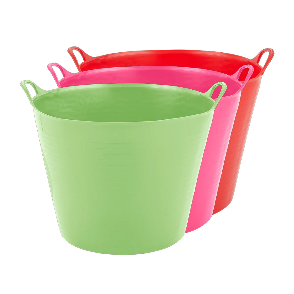 Flexikorg 26L för häst i pistage, röd och rosa – passar som foderskål, balja eller förvaring.