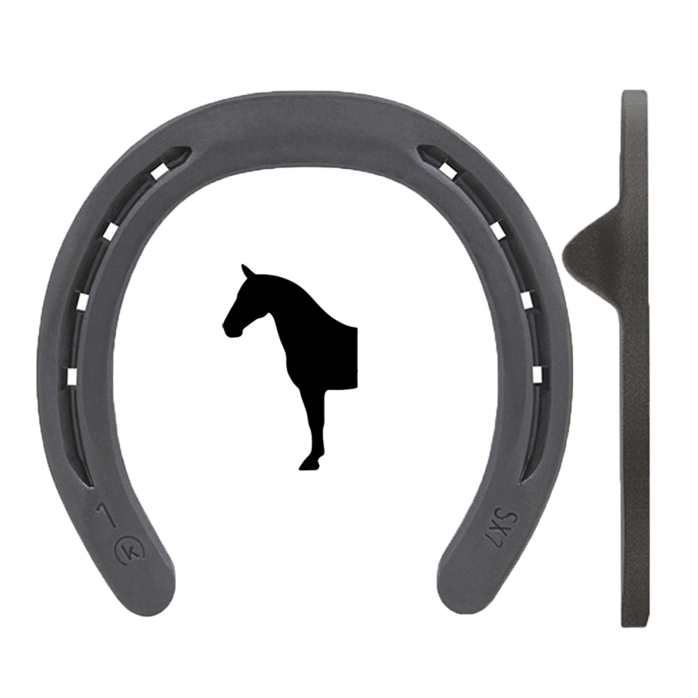 Lätt framsko i järn med utanpåliggande quarterkappor, framtagen för hoppning och lättare beslag. Finns i storlek 3x0–2.