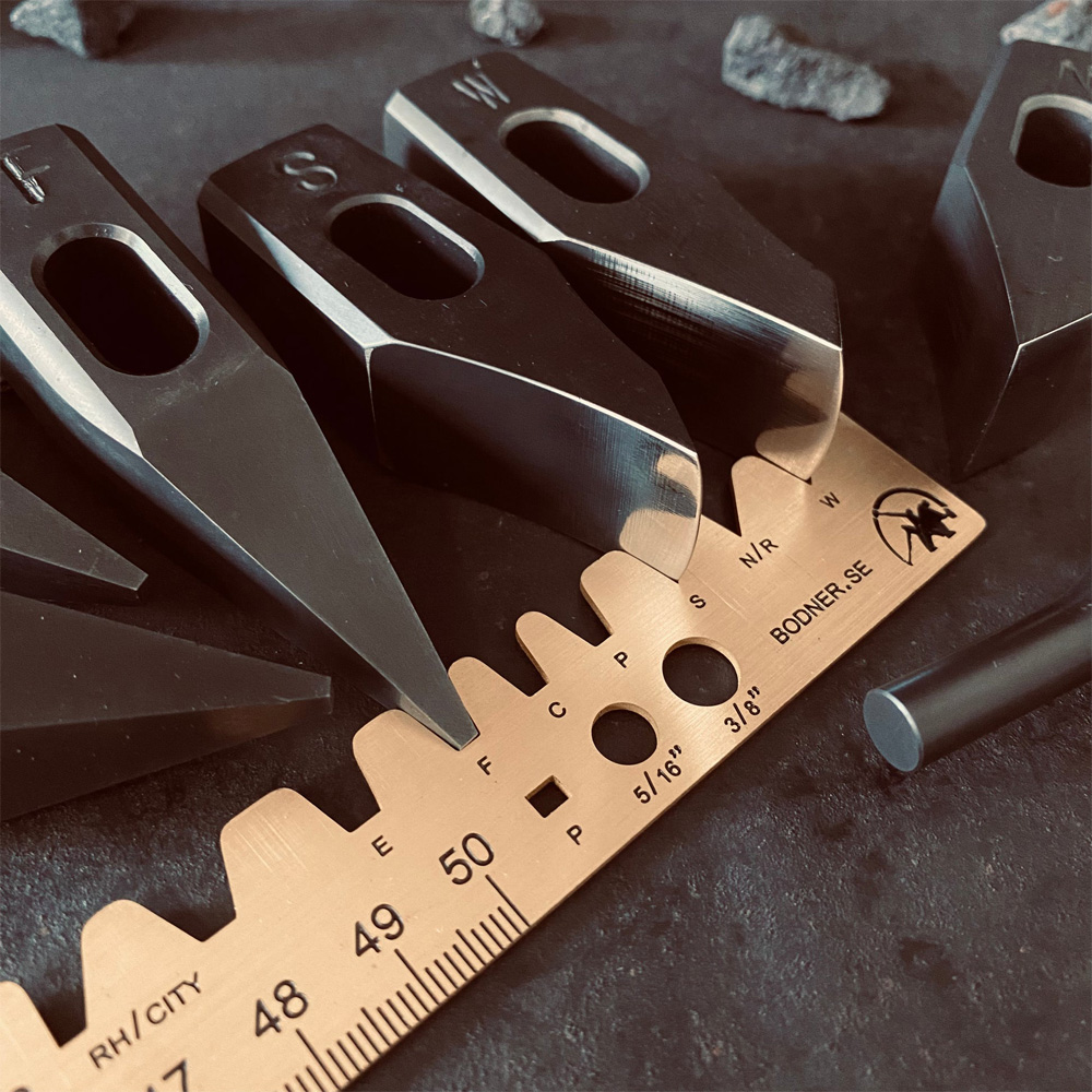 - Slipmallar för stämpelhamrare och falshammare – hjälper dig hålla rätt vinkel vid verktygsvård.