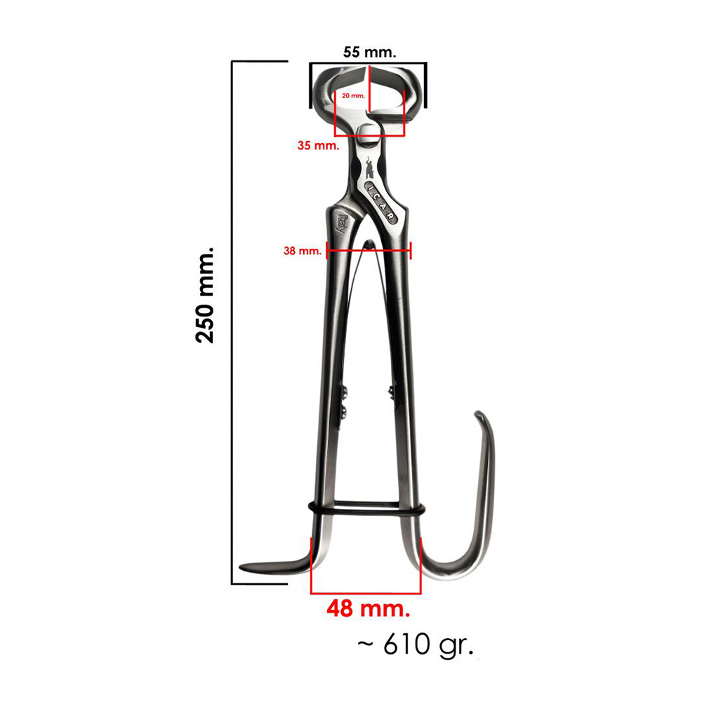 ICAR 1-Hands Föl 10" är en fjäderförsedd verktång designad för att enkelt kunna verka ponny, föl och små hästar med en hand. Tillverkad i Italien av europeiskt stål av högsta kvalitet, erbjuder den optimal balans mellan precision och kraft.
